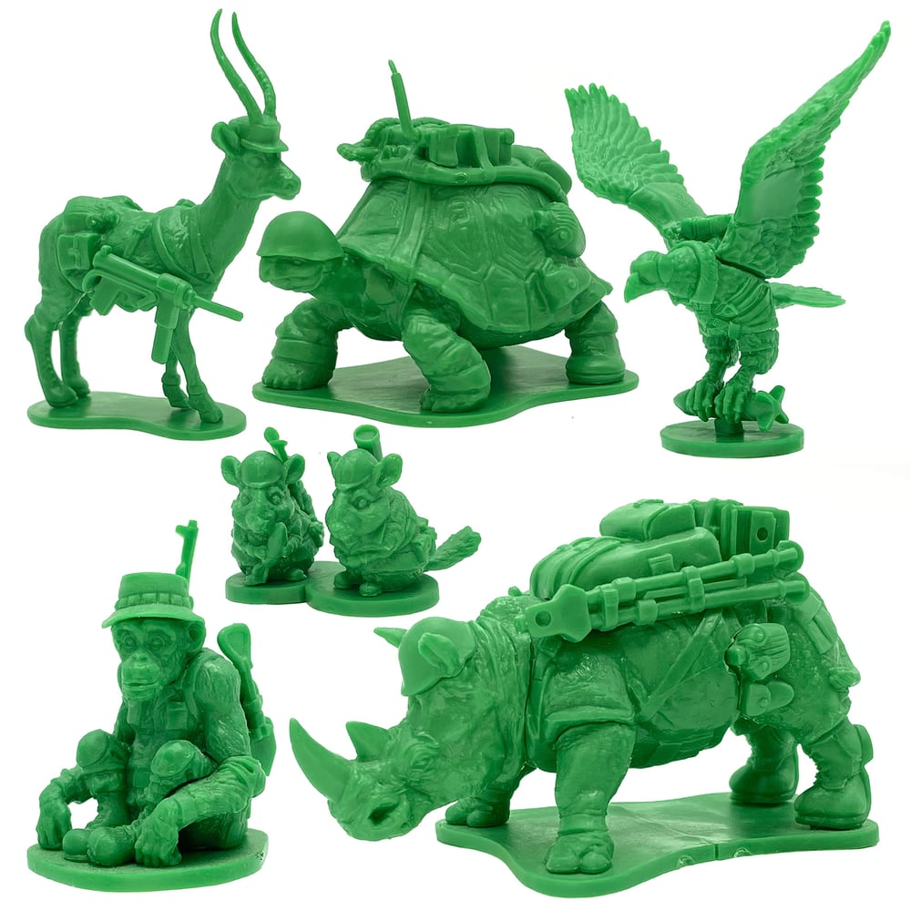 Wild animals of various sizes in military gear from Panda'a Ana Green Green Army Series ! + 2. Each animal is comprised of a few pieces. Sold loose, no booklet. from Takara Tomy (2014, 2015)